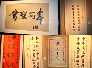 海峡两岸文化交流盛事上海“海峡杯”首届书法大展11日在上海图书馆开幕。国台办主任王毅、海协会会长陈云林,以及连战、吴伯雄、宋楚瑜、郁慕明、蒋孝严等两岸知名人士的墨宝同台展出。