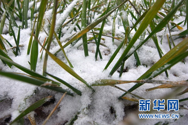 2月9日,在河南许昌乡村的麦田里,久旱的麦苗覆盖了一层雪花。当日,受冷空气影响,河南迎来新春的第一场雪。降雪为久旱的中原大地提供了急需的水分给养。新华社发(牛书培 摄)