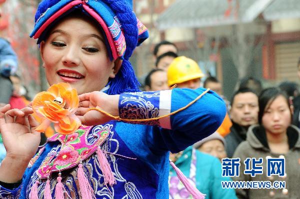 1月31日,在四川省汶川县映秀镇,当地群众载歌载舞喜迎新春。
