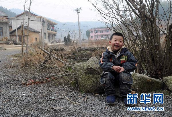 1月31日,腊月二十八,王宇焱独自坐在家门口的石头上玩耍。新华社记者 罗晓光 摄