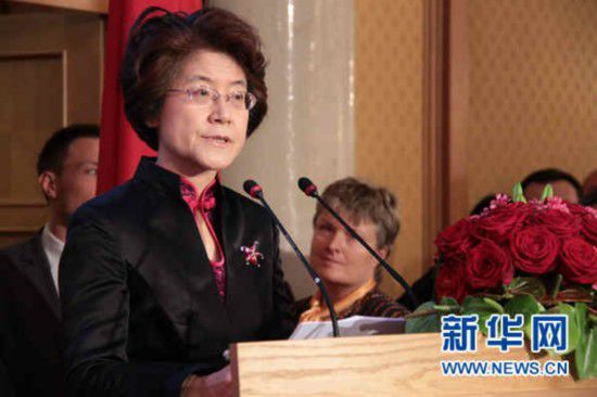 9月25日,美国国会议员赵美心在国庆招待会上致辞。新华社记者杨磊摄