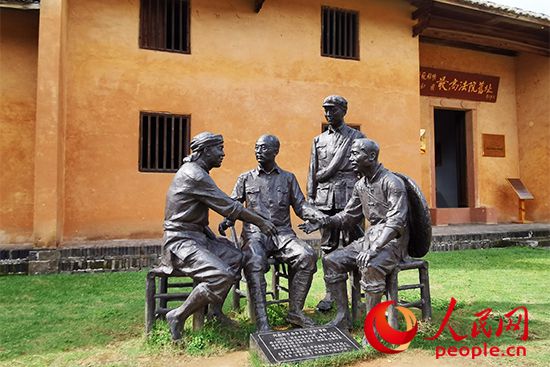 现中华苏维埃共和国最高法院旧址院内,立有何叔衡平息合龙乡“争水”事件铜像。人民网记者 黄玉琦摄