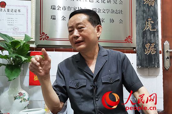 瑞金市红色文化研究会会长、瑞金市法院研究室原主任、退休法官严帆接受采访。人民网记者 黄玉琦摄