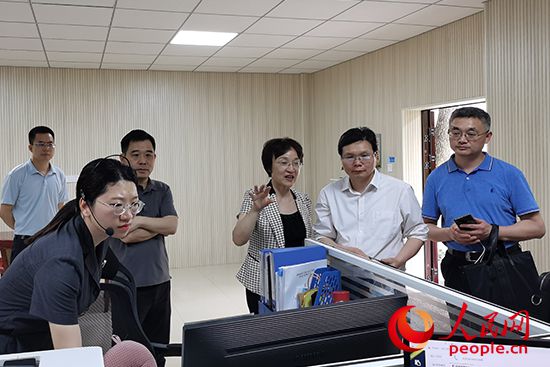 赣州市中级人民法院院长喻德红(右三)向记者介绍民意受理中心的运行情况。人民网记者 黄玉琦摄