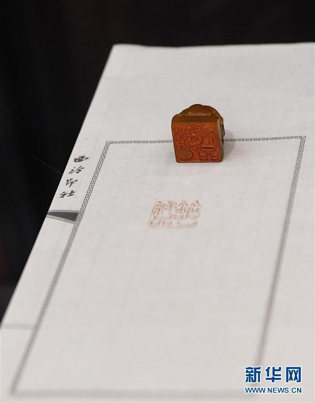 7月2日在浙江省博物馆孤山馆区拍摄的“铭心绝品”田黄印。新华社记者 徐昱 摄