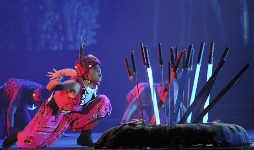 当晚,广州亚运会开闭幕式总导演陈维亚率国家歌舞团百人阵容在台北上演大型民族音乐舞蹈《秘境之旅》。该作品此前已在世界各地巡演超过百场。它以西南地区少数民族风情为素材,凭借全部原创的音乐作品、萃取于民间的舞蹈元素、难得耳闻的玄妙乐器、国际流行的编配手法、身临其境的舞台氛围,超越了传统的大型歌舞表演范畴,创造了民族歌舞类演出的票房奇迹。新华社发(吴景腾 摄)