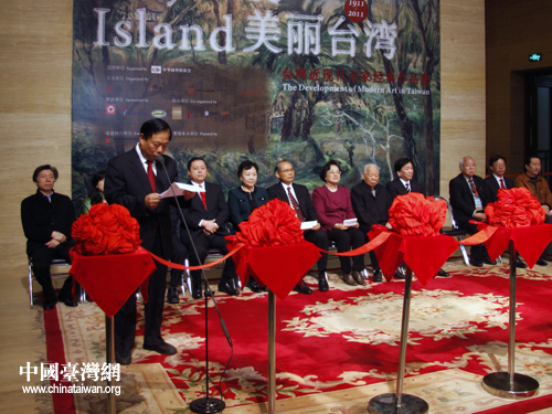 中国台湾网4月2日北京消息 2013年4月2日上午10时,“美丽台湾—台湾近现代名家经典作品展”在北京中国美术馆开幕。来自两岸的嘉宾、艺术专业人士约200人出席开幕式。全国政协副主席林文漪,全国台联名誉会长张克辉,文化部副部长赵少华,全国台联党组书记梁国扬,海协会副会长王富卿,台湾文化会馆基金会执行长苏进强,董事长林博文等出席并为开幕式剪彩。