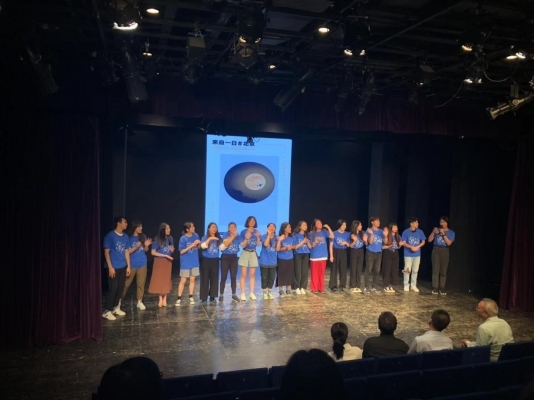 结业分享会以“来自一日#北京”为主题,分别结合戏剧、舞蹈音乐及短视频多领域的表演,呈现20名学生在北京一个月以来的实习成果及汇报,也涵盖“戏剧”的艺术感悟和“京城”生活的杂感,各个环节均由20名台湾学生精心设计,大家各尽其才,通过游戏与对谈的方式,对比两岸在艺术、工作领域的异同。学生逐个分享实习心得、生活趣闻,呈现了一场极具特色的分享会。