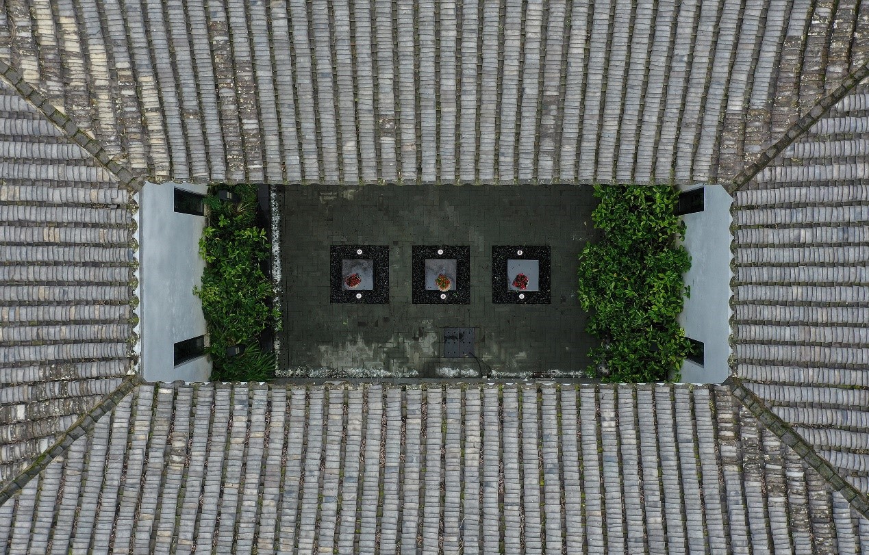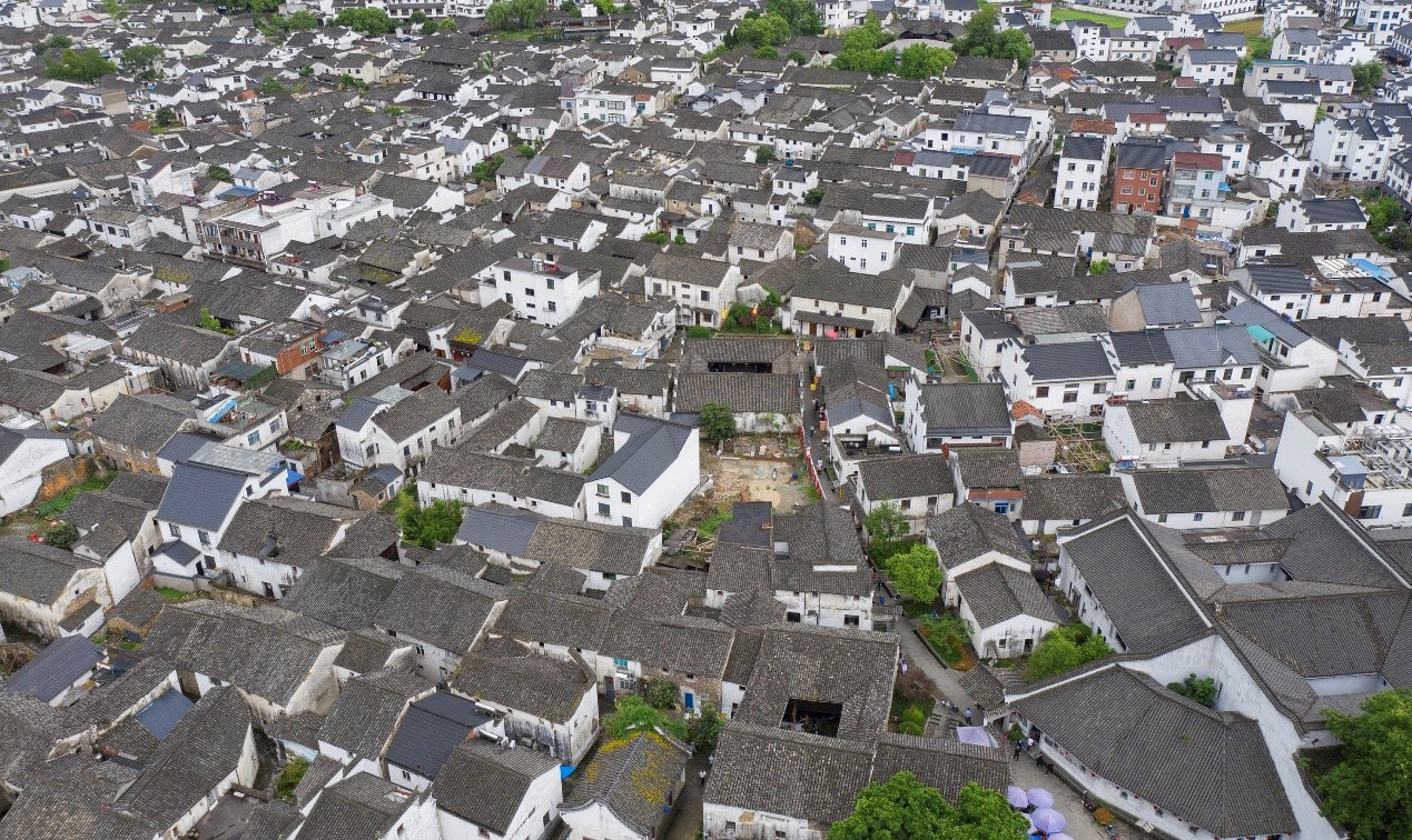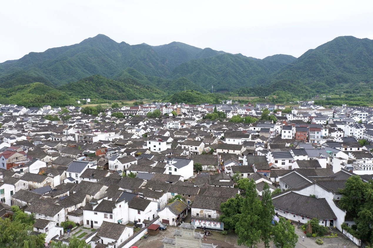 图为航拍颇具江南特色的富阳龙门古镇建筑。