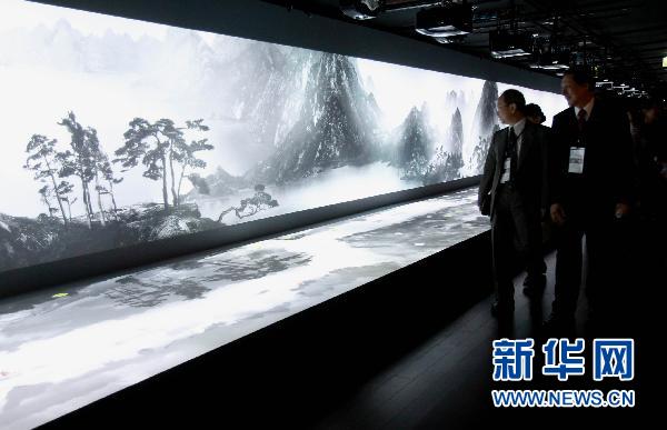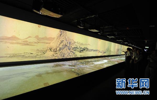 6月1日,观众在参观通过多媒体技术“合璧”后的《富春山居图》。新华社记者李明放摄
