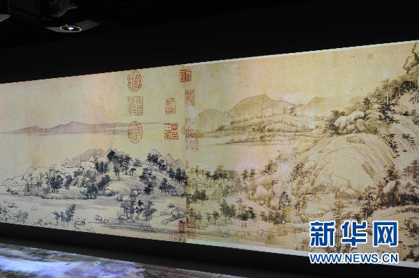这是6月1日拍摄的通过多媒体技术“合璧”后的《富春山居图》。新华社记者韩传号摄