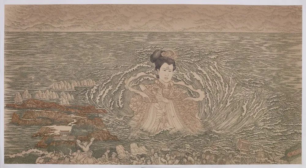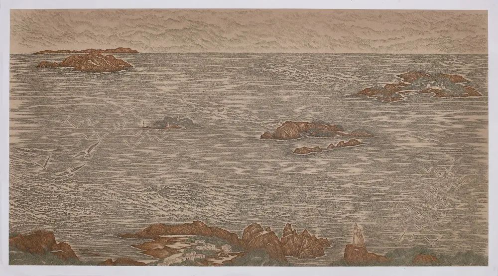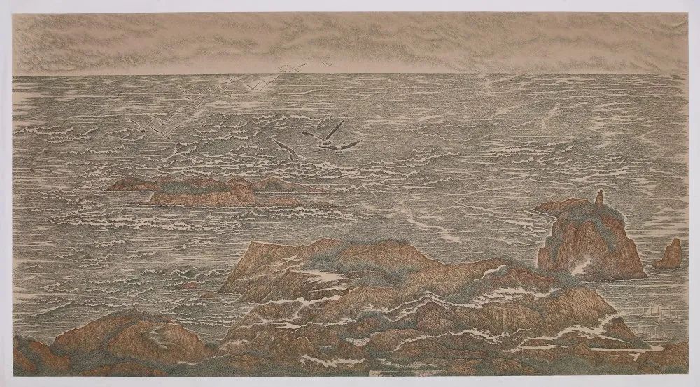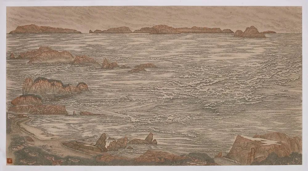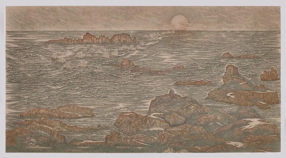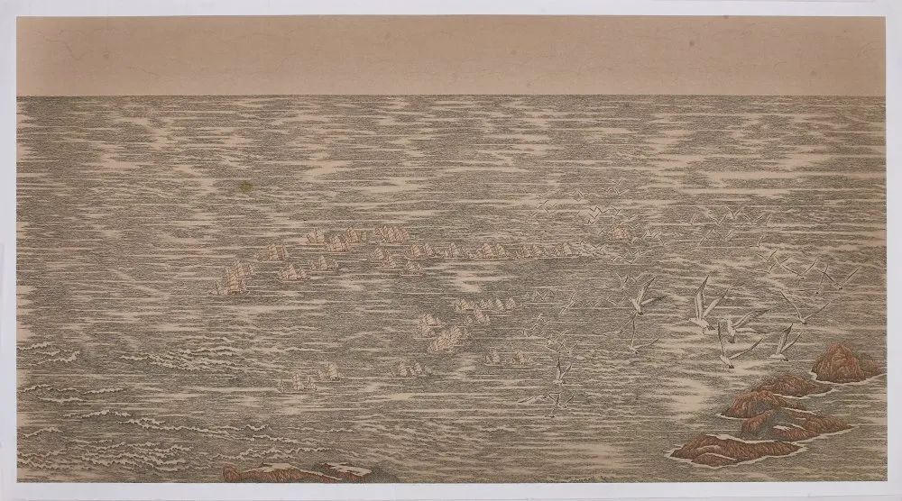 巧的是,浙江洞头与台湾一水相连,地缘相近、人缘相亲、语言相通、文缘相承,此次,以侯传芳、金国斌、吴聘真、叶向荣、吕相国等艺术家组成的创作团队,继完成《八百里瓯江图》之后,于2020年启始,历时一年半余,用独特的钢笔画技法,以瓯江入海口的半屏山为开篇,顺江入海,延绵海峡,直至高雄半屏山,创作了《两岸半屏山》山海长卷,展现了两岸半屏山山水相连、人文相通的历史渊源。《两岸半屏山》长卷由12幅高1米、长2米的画卷组成,总长24米。