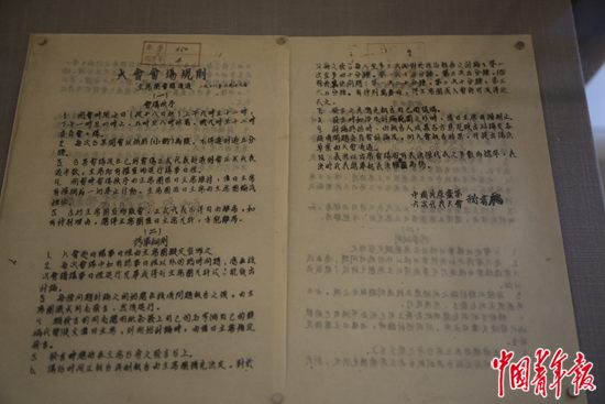 展厅第二部分“中共六大的筹备与召开”中展出的大会会场规则文件。中青报·中青网驻俄罗斯记者 张健/摄