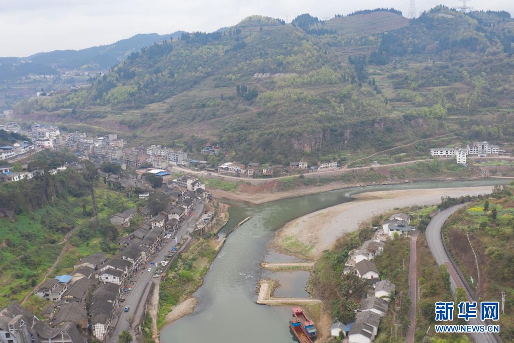 这是3月10日拍摄的赤水河太平渡口一角(无人机照片)。新华社记者 胥冰洁 摄