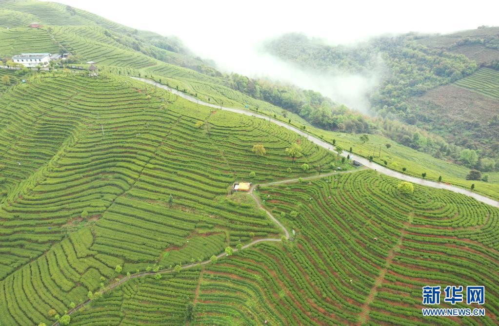 这是4月1日拍摄的福建省天湖茶业有限公司的一处茶叶种植基地(无人机照片)。新华社记者 林善传 摄