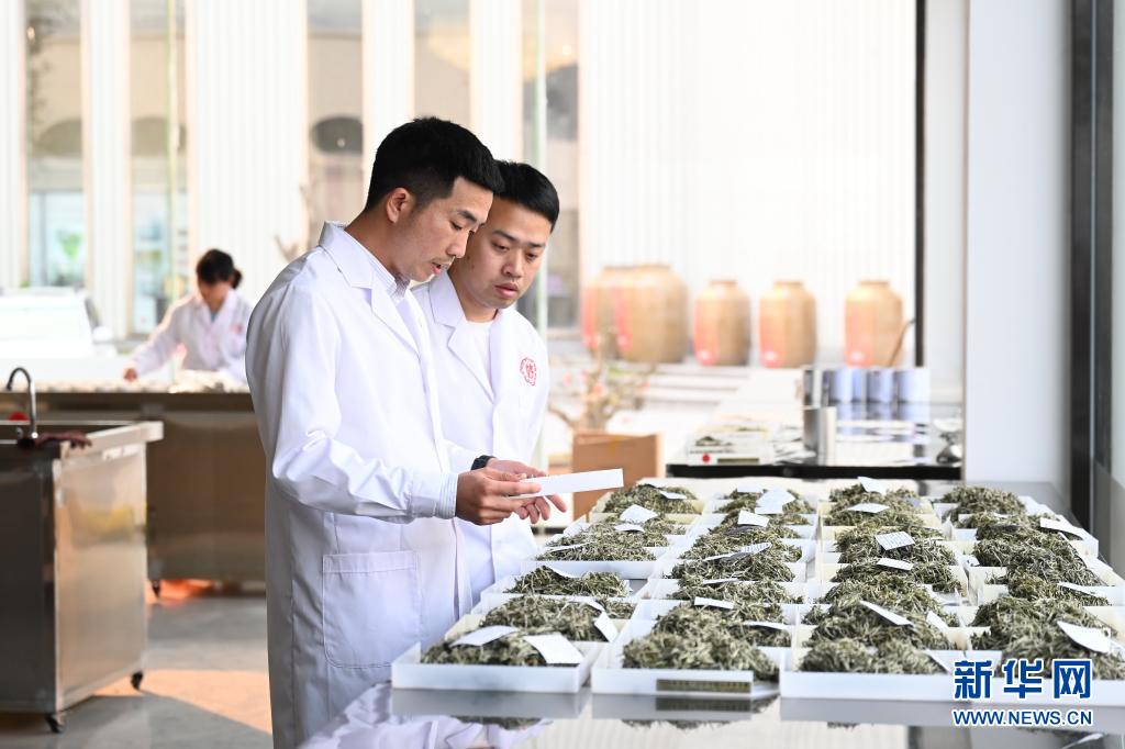 工作人员在位于福鼎市点头镇的六妙白茶茶叶品控中心审评茶叶质量(4月1日摄)。新华社记者 林善传 摄
