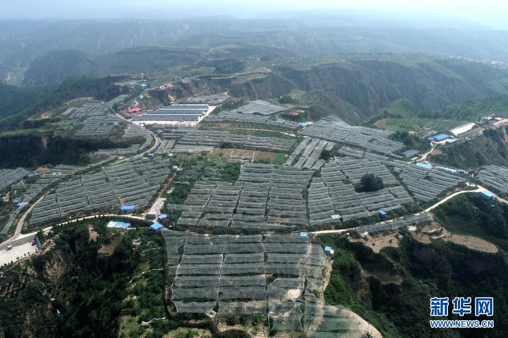 2020年7月29日无人机拍摄的延安市延川县梁家河村山地苹果园(无人机照片)。新华社记者 张博文 摄