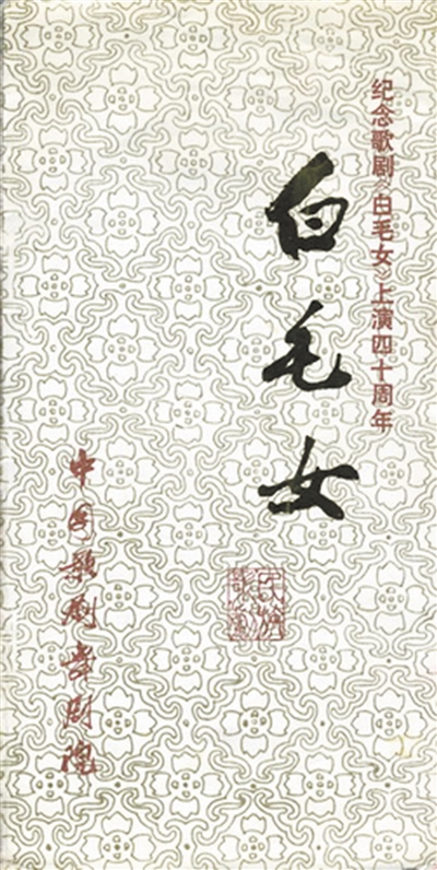 图片自上至下分别为1942年歌剧《白毛女》在延安演出;上世纪七十年代,郭兰英饰演喜儿;1985年歌剧《白毛女》节目单、1952年歌剧《白毛女》节目单、电影《白毛女》海报。