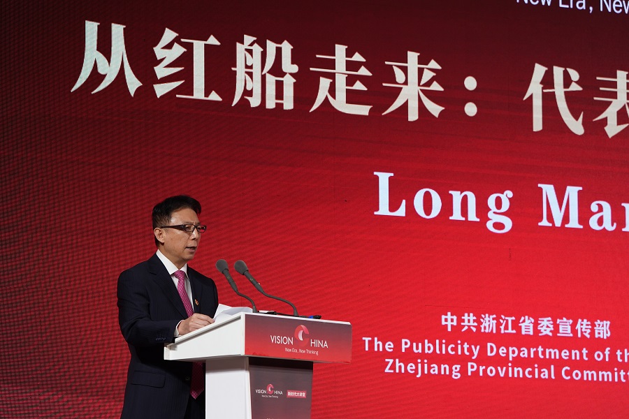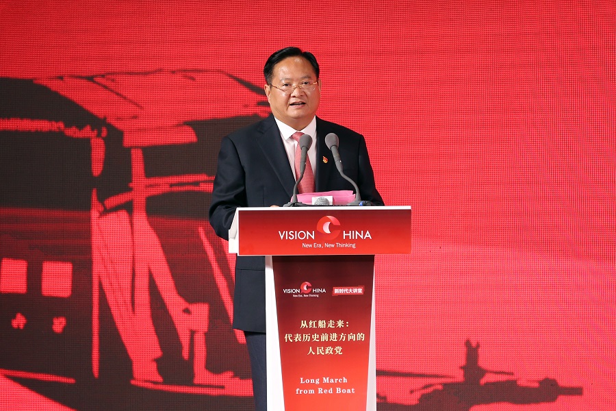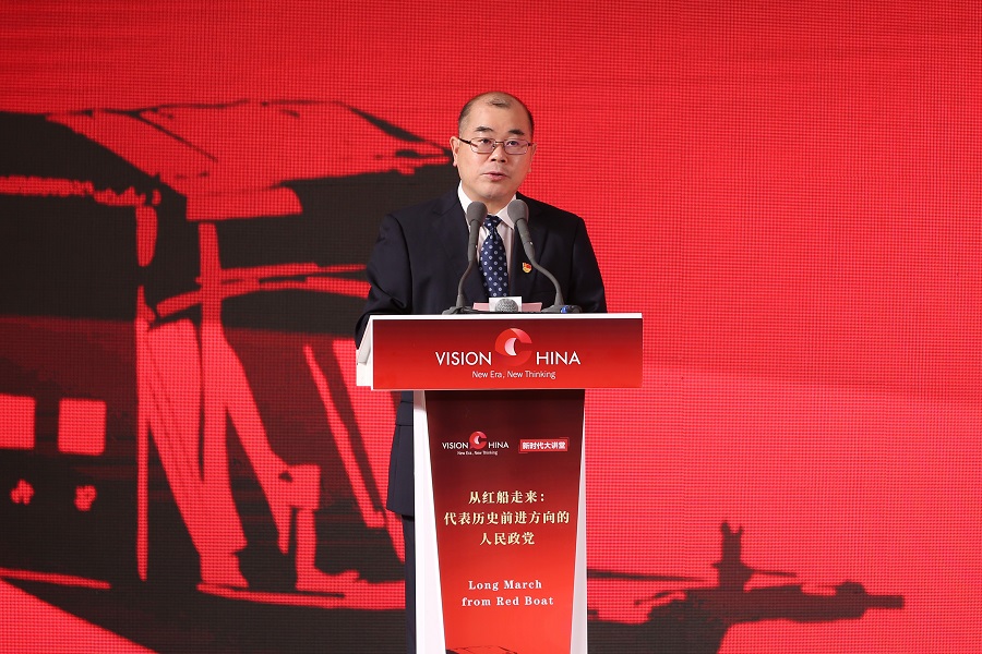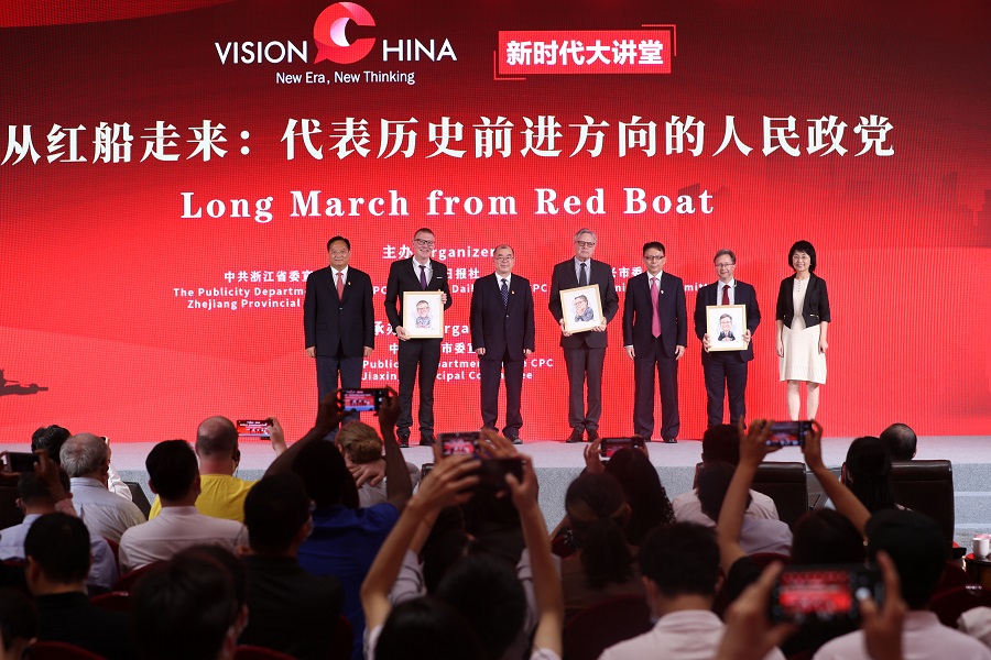 中国日报社联合中共浙江省委宣传部和中共嘉兴市委于6月20日在嘉兴南湖,共同举办主题为“从红船走来:代表历史前进方向的人民政党”的“新时代大讲堂”。中国日报 王壮飞 摄