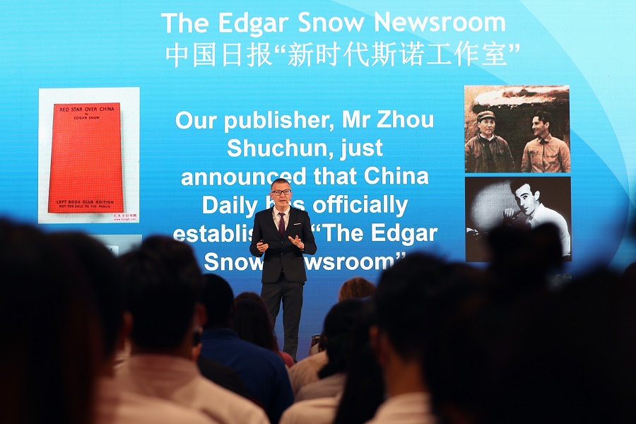 活动期间,中国日报社还宣布成立“新时代斯诺工作室”。工作室将充分发挥报社资深外籍专家和国际友人的作用,对外讲好中国故事和中国共产党的故事,展示真实、立体、全面的中国。