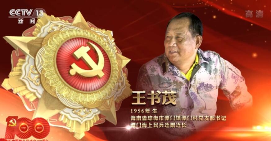 王书茂,海南琼海人,1996年6月入党,他先后参加多项国家重大涉海工作,参与南沙岛礁建设,培养南海维权民间力量。在南海维权斗争中冲锋在前,不怕牺牲、寸步不让,坚决捍卫我国领海主权和海洋权益。此外,他还带领群众造大船、闯深海,发展休闲渔业、建起海洋民宿,实现共同富裕。荣获“全国劳动模范”、“改革先锋”等称号,是第十三届全国人大代表。