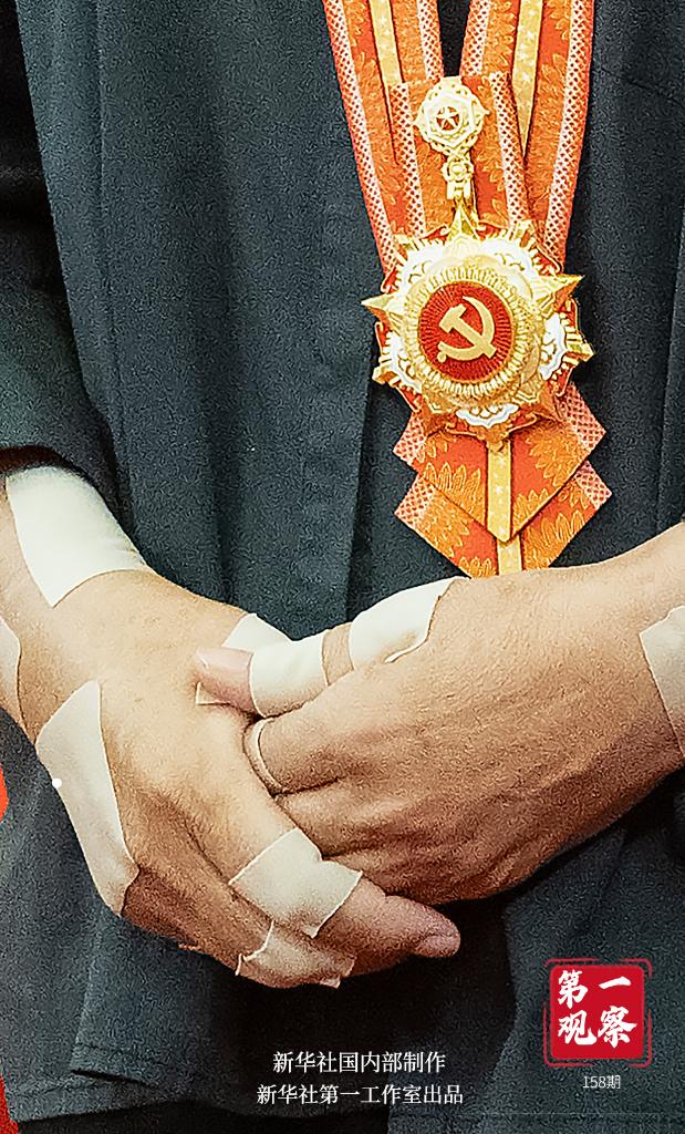 一双贴满膏药的普通劳动者的手,捧起代表党内最高荣誉的“七一勋章”。