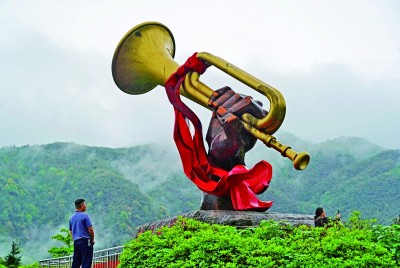 游客在江西井冈山参观“胜利的号角”雕塑。1927年,中国共产党人在井冈山创建了第一个农村革命根据地,成为中国革命走向胜利的光辉起点。本版照片均为新华社发