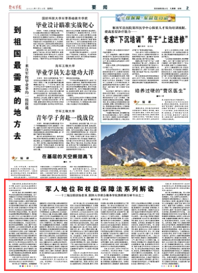 记者:国防是全民的国防,维护军人地位、保障军人权益需要动员全社会力量,请您谈谈法律在这方面有哪些新规定?