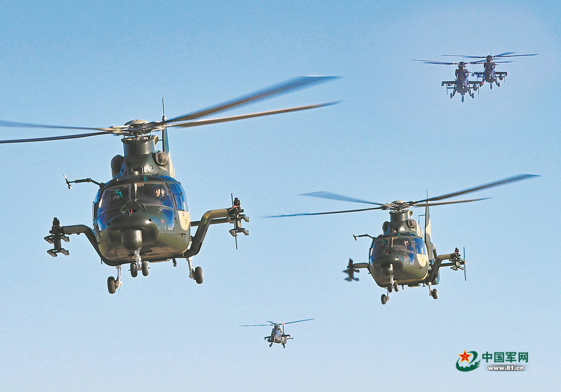 随着某陆航旅指挥员一声令下,一架架武装直升机腾空而起。隐蔽悬停、锁定目标、果断击发……进入作战地域后,数架直升机交替向“敌”阵地发起火力打击。
