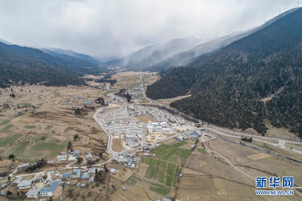 这是鲁朗国际旅游小镇(4月2日摄,无人机照片)。新华社记者 孙非 摄