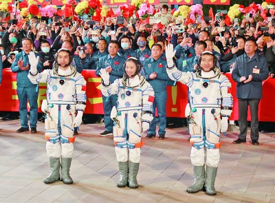 神舟十三号载人飞行任务航天员乘组出征仪式现场。新华社发