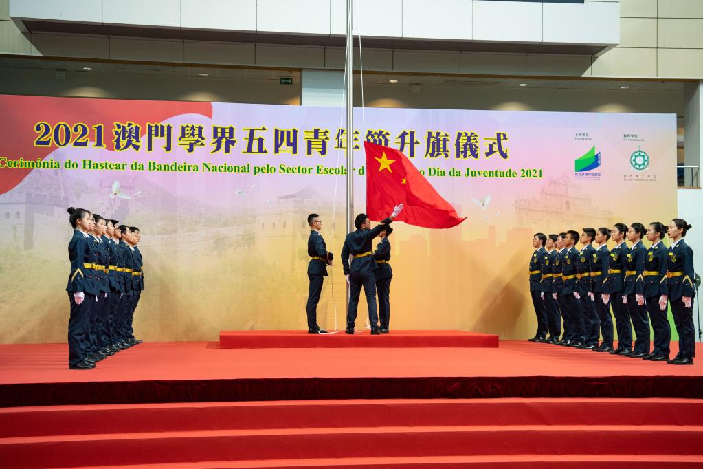 2021年5月4日,澳门学界举行青年节升旗仪式。新华社记者 张金加 摄