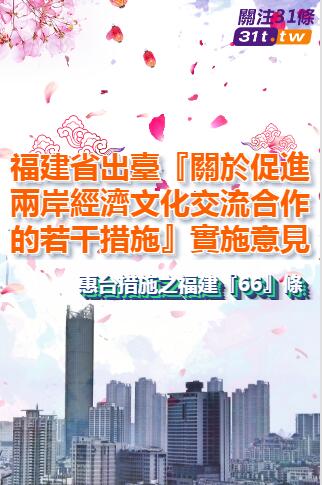 点击上图,了解《福建省贯彻〈关于促进两岸经济文化交流合作的若干措施〉实施意见》。