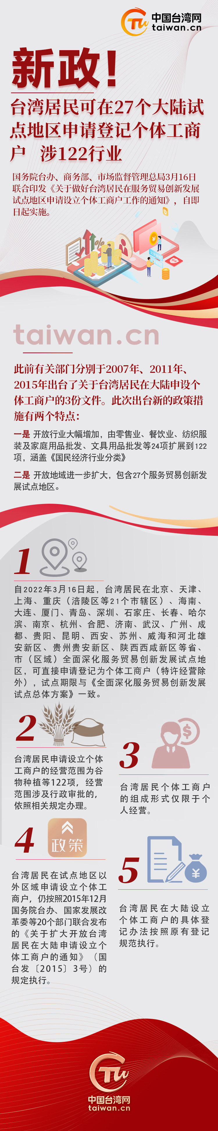 【图解】新政!台湾居民可在27个大陆试点地区申请登记个体工商户 涉122行业