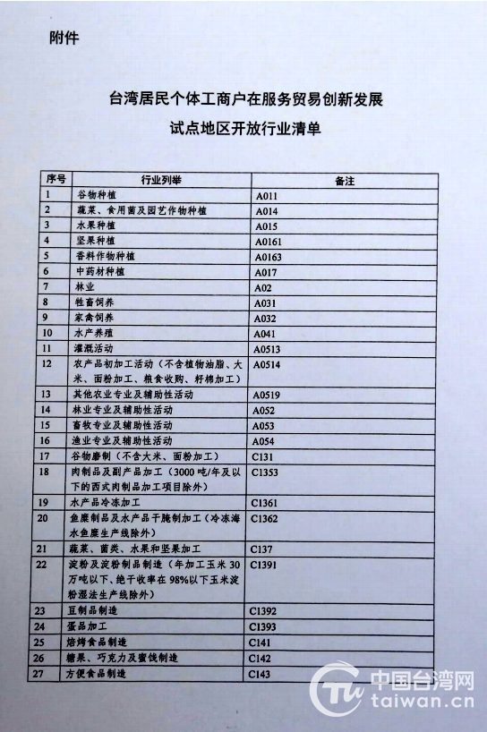 国务院台办、商务部、国家市场监督管理总局联合印发实施《关于做好台湾居民在服务贸易创新发展试点地区申请设立个体工商户工作的通知》