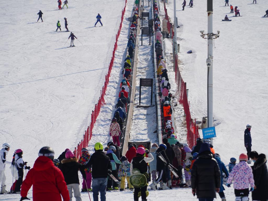 2022年2月17日,在沈阳怪坡国际滑雪场,非双休日时游客也很多。新华社记者 崔师豪摄
