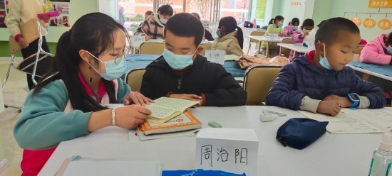 云南会泽新城妇联项目点的志愿者正为孩子们辅导功课。(受访者供图)