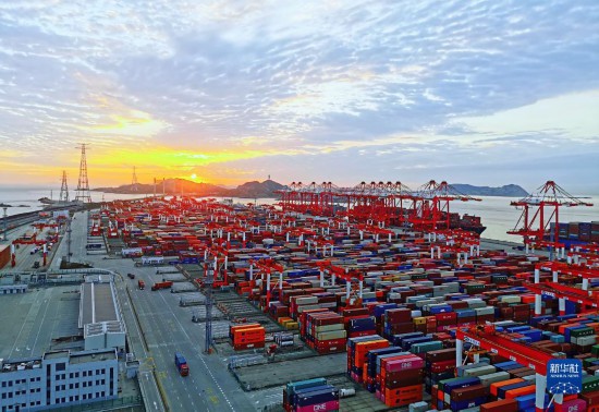 这是1月1日拍摄的洋山港的新年日出。新华社发