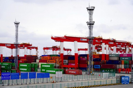 2月17日拍摄的上海洋山港四期自动化码头。新华社记者 杨有宗 摄
