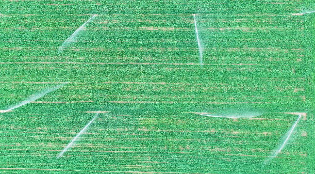 3月22日,商水县高标准农田示范区内正在喷灌作业的麦田。新华社记者 张浩然 摄