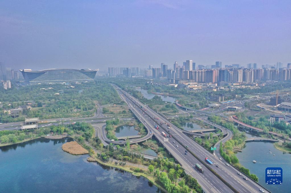成都锦城湖和锦城公园。新华社记者刘坤摄