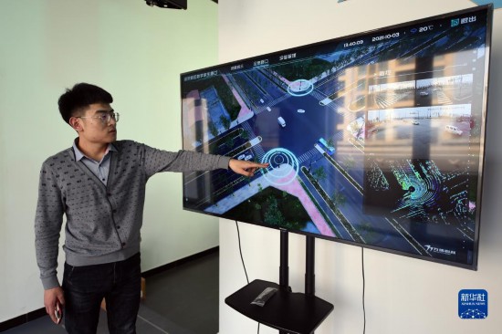 工作人员在雄安数字交通实验室介绍数字交通实验室项目(1月7日摄)。 新华社记者 骆学峰 摄