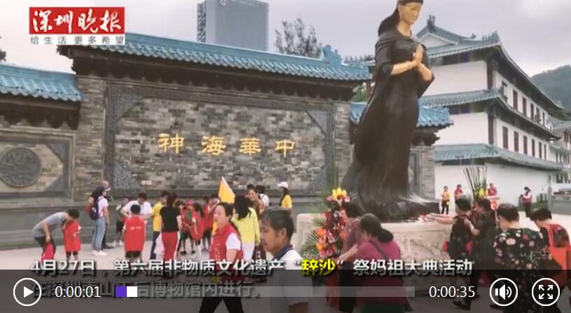 2019年4月27日上午9点30分,深圳南山天后博物馆(赤湾天后古庙)严格遵循古制,恢复古礼,以《大明集礼》、《新安县志》等典籍记载为依据,结合岭南传统文化,举办第六届 " 辞沙 " 祭祀大典活动,再现明代祭祀海洋的场景。本次 " 辞沙 " 祭海大典由粤、港、澳、台以及东南亚地区妈祖庙的代表担任承献官,借助妈祖文化促进粤港澳大湾区以及 " 一带一路 " 的人文交流。