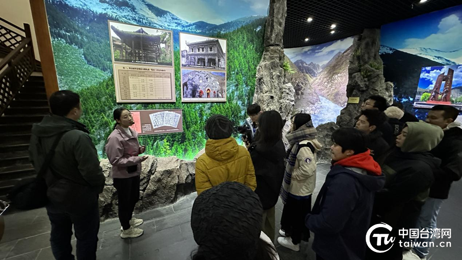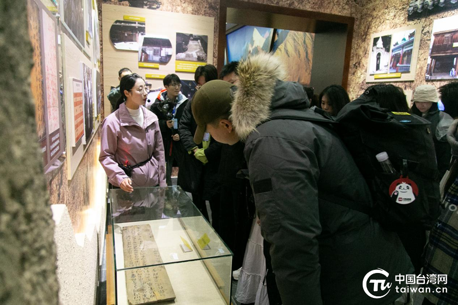 讲解员在为几位台生和台湾自媒体人讲解革命历史文物。(中国台湾网 张曈 摄)