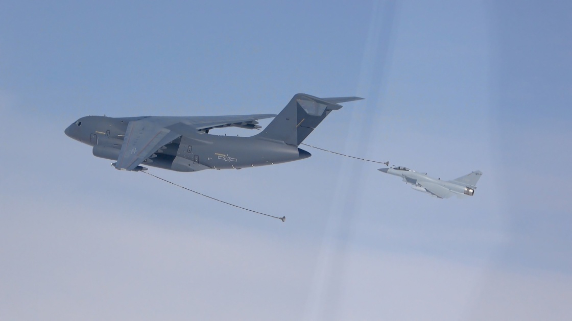 这是战机在进行空中加油。(视频截图)