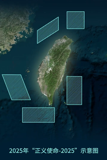 4月1日开始,中国人民解放军东部战区组织陆海空火等兵力,位台岛周边组织舰机多向抵近台岛,开展联合演训。4月2日,东部战区位台湾海峡中部、南部相关海域组织“海峡雷霆-2025A”演练。12月29日至31日,东部战区组织陆海空火等兵力,位台湾海峡、台岛北部、台岛西南、台岛东南、台岛以东,开展代号为“正义使命-2025”的联合演习。解放军上述军事行动是对“台独”分裂势力和外部干涉势力的严正警告,是捍卫国家主权和领土完整的必要、正义之举。