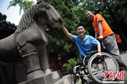 邀请在地震中受伤的该院10名伤残同学到武侯祠参观,让他们体会传统文化,感受来自社会大众的关爱。