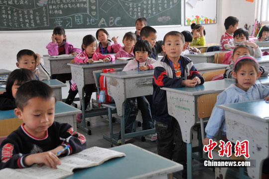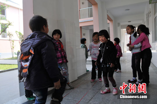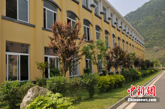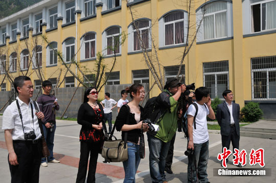“全国网络媒体重返灾区看奇迹”采访报道的记者们走进马鹿乡中小学。(刘羡 摄 )