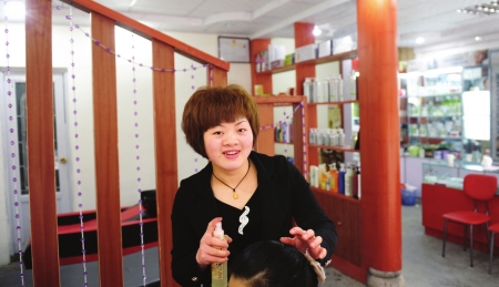 作为小镇上不多的美发店之一,爱笑的曾芸有不少回头客,而且大家都是乡里乡亲的,亲近得很。