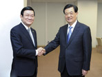 | 2012年9月7日,国家主席胡锦涛在俄罗斯符拉迪沃斯托克会见越南国家主席张晋创,就巩固和发展中越关系坦诚深入交换意见。